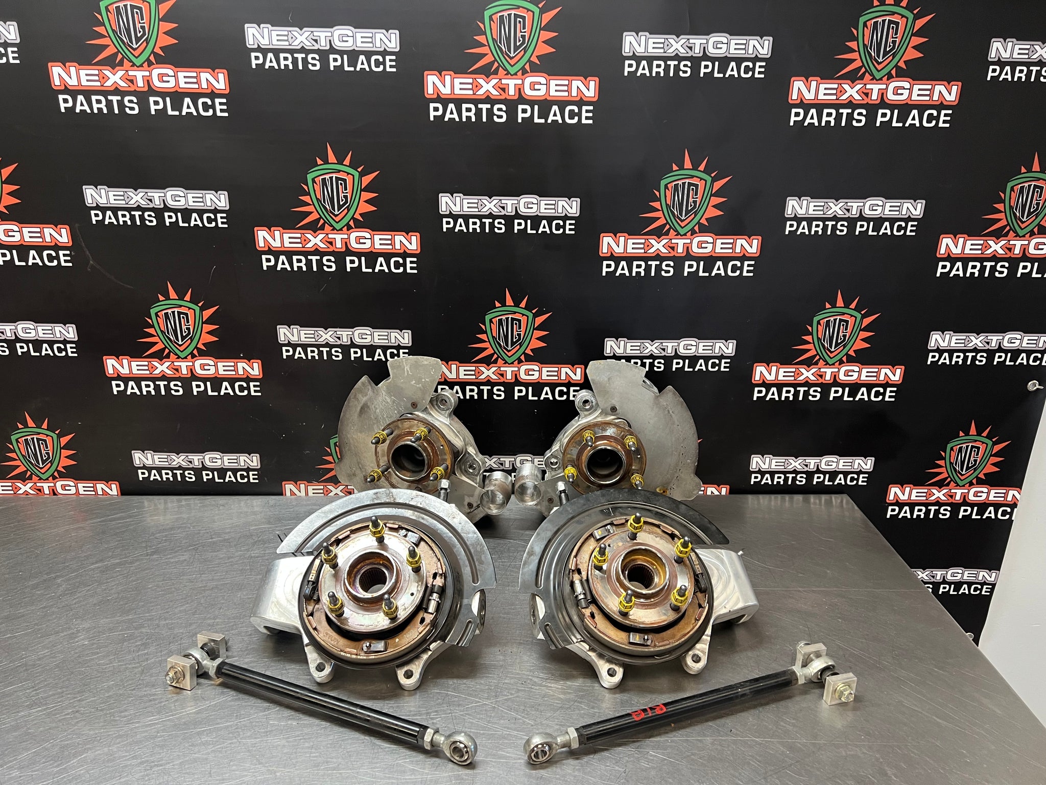 HAS CUSTOM BRAKE DUCTS AND EXTENDED STUDS MAKE SURE TO ENSURE THAT THESE WILL FIT YOUR VEHICLE